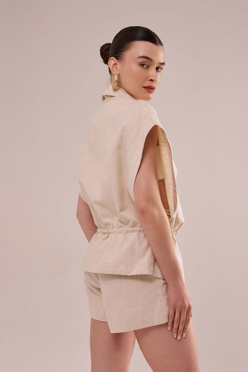 bata de modelagem super ampla, com gola clássica, confeccionada em tecido de algodão com viscose. possui fechamento transpassado por amarração na cintura em cordão de algodão. pode ser usada como colete e saída de praia. fica lindíssima com o shorts da mesma coleção. um conjunto lindo e fresquinho para passeios especiais de verão!