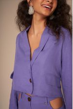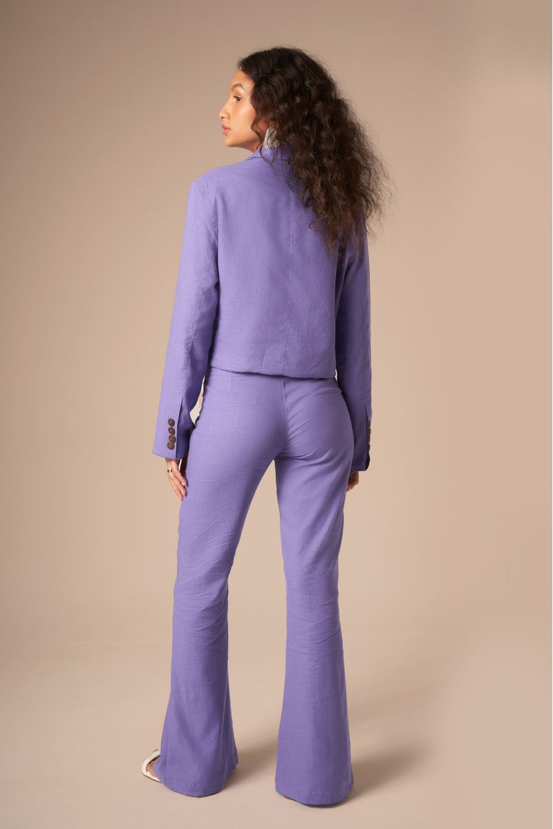 para compor com a calça, o blazer cropped é perfeito se usado como conjunto. com um top por baixo, você fica pronta para qualquer ocasião. a composição do tecido é linho com viscose, macio e na cor tulipa, a cor da estação.