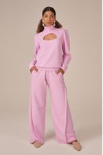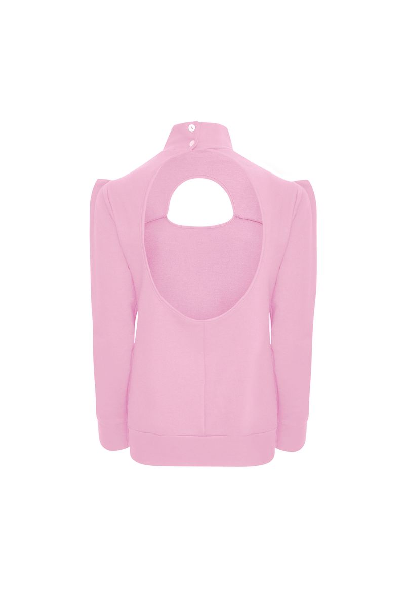 blusa de moletom estruturada, com recorte no decote e nas costas. um look casual mas fashion, esta blusa é versátil e pode ser usada em diversas ocasiões. feita com algodão certificado BCI (Better Cotton Iniciative) e acabamento com amaciante ecológico proveniente da casca do arroz. a cor rosa primavera é um tom pastel lindo e que vai bem em qualquer tom de pele.
