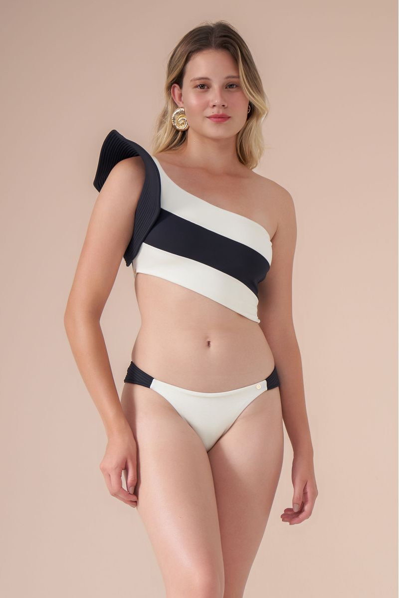 esta calcinha midi é muito lindinha. bicolor, preto e branco com alças em detalhes de matelassê. com bumbum anatômico, tem a cobertura média na parte traseira. veste bem todos os biotipos.