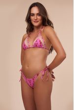calcinha mini estampada com cobertura média do bumbum e amarração lateral com alças finas se molda a todos os biotipos. produzida na estampa exclusiva lobster cujo desenho mistura tons avermelhados de várias lagostas com tons mais rosados ao fundo. veste bem qualquer tipo de quadril. o tecido tem toque gelado e macio.
