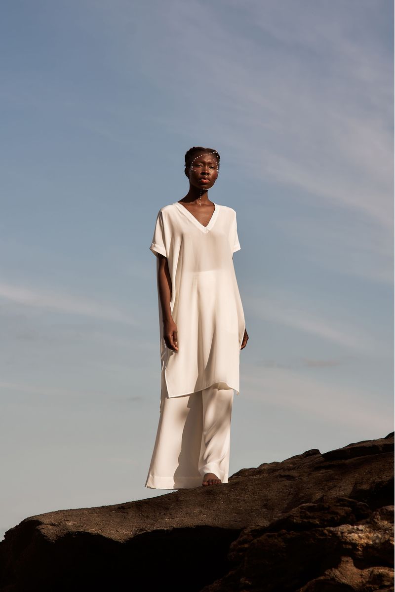 a calça em seda da coleção conchas é perfeita para dias solares. fresca, leve e fluida, essa peça 100% em seda tem cós alto trabalhado com um plissado feito artesanalmente, deixando a peça extremamente delicada e elegante. pode ser usada além das areias, quando combinada com um blazer ou outros itens. uma calça must-have com certeza!