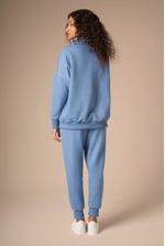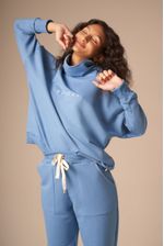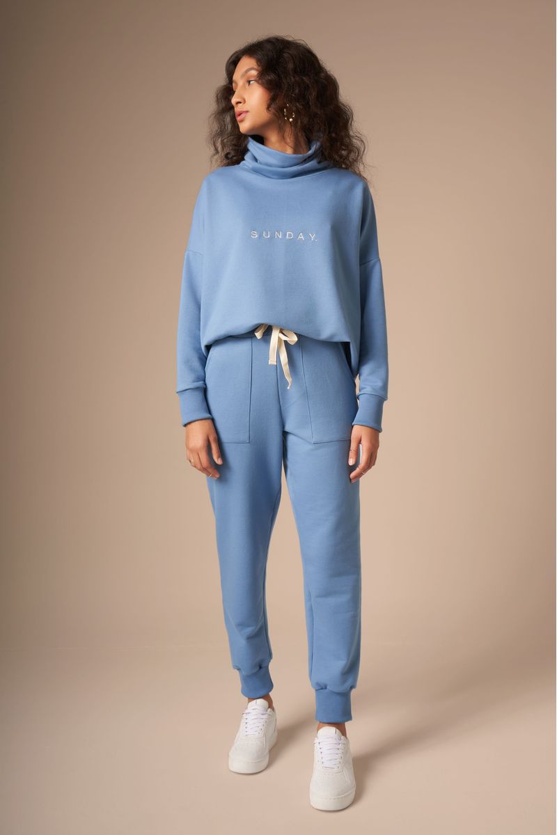 Calça com bolsos amplos, modelagem confortável, cintura com dobra dupla em rib e laço de corda para acabamento. Uma peça que promove o conforto, base de moletom com acabamento penteado que proporciona muita maciez para peça. O moletom é ecoamigo, pois além de usar na sua composição algodão 100% certificado (BCI - Better Cotton Iniciative), o amaciante é ecológico, proveniente do óleo extraído da casca de arroz, chamado Rice Recycle, eliminando o uso de amaciantes químicos. A cor lagoon é um azul denso que contrasta com qualquer tom de pele.