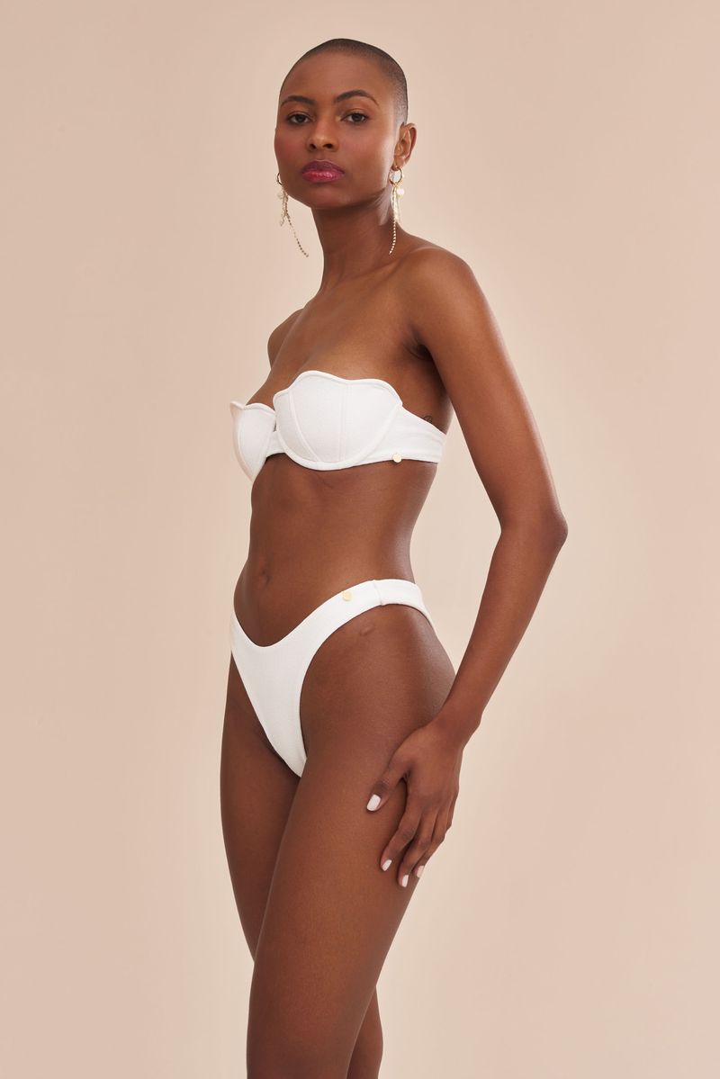 essa calcinha tem uma modelagem incrível. mais conhecida como asa delta, essa peça alonga a silhueta e, para quem tem quadril menores, quando usada mais alta, aumenta o quadril. muito confortável, essa peça veste todos os biotipos. na cor off white, a peça ganha ainda mais riqueza com o tecido texturizado como conchinhas do mar. perfeita!