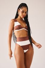 Calcinha de biquini modelo hot pant, cobertura maxi, possui detalhe artesanal das listras feito a mão, onde cada cor é unida uma a uma para formar a estampa de listras.