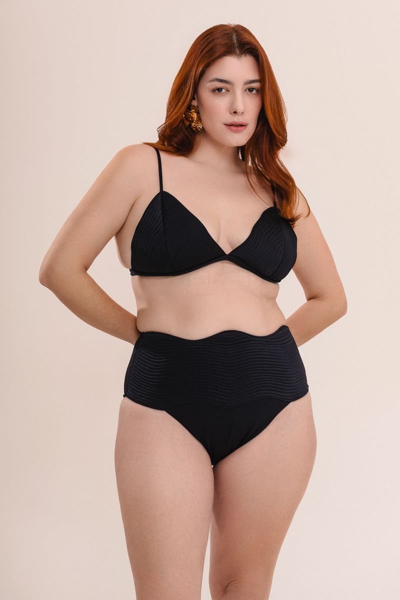 calcinha hot pant com um painel frontal em ondas de matelassê, estruturada e com laterais mais largas. nesta versão a calcinha maxi maat oferece beleza e conforto em uma só peça. por ser alta e estruturada veste bem qualquer biotipo e todos os tipos de quadril. feita artesanalmente, essa peça é costurada linha a linha, costura a costura, formando este visual único de ondas no matelassê. na variante toda preta, fica ainda mais elegante.