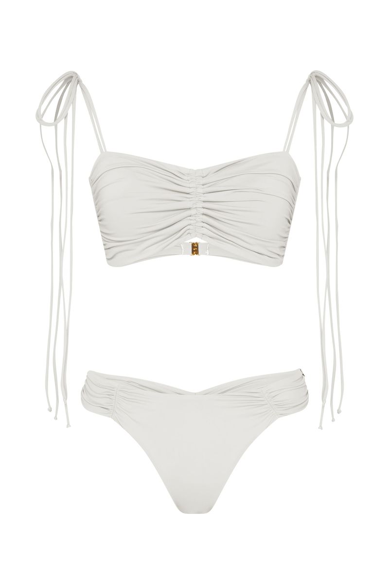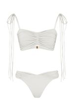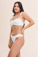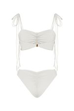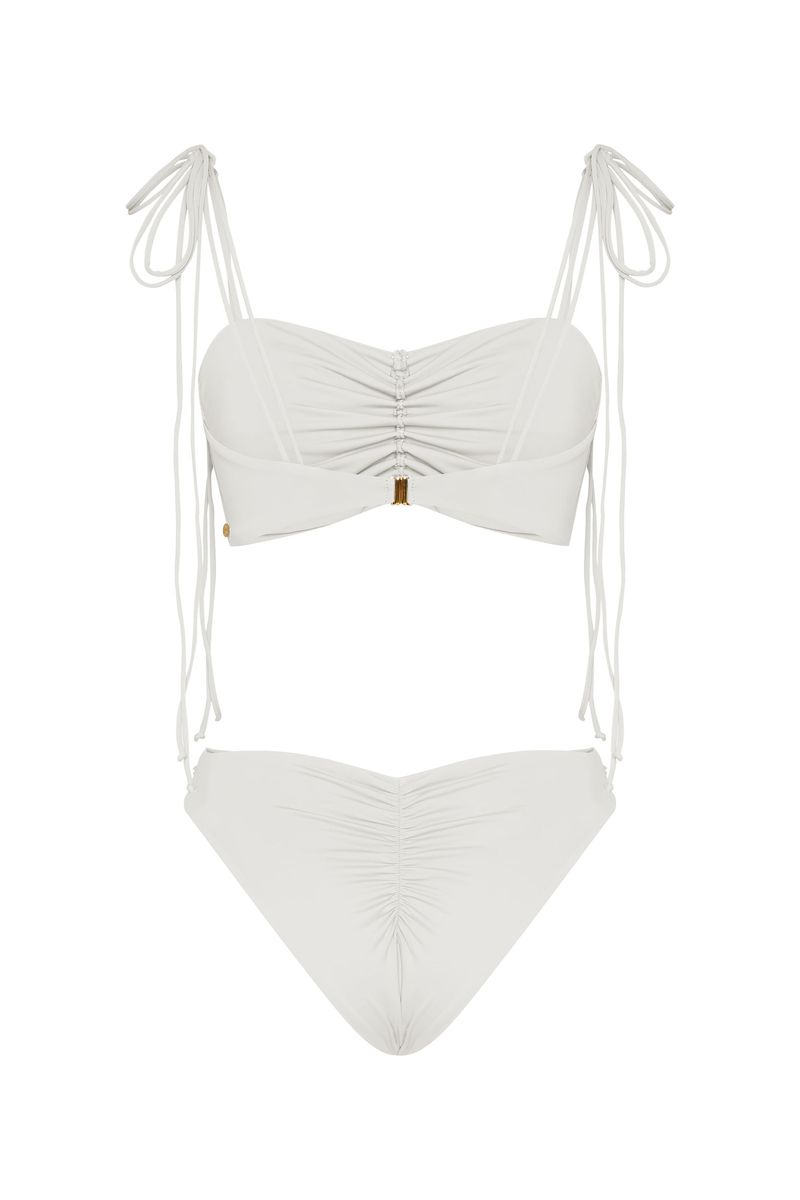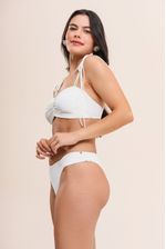 a calcinha midi tem modelagem asa delta, detalhes de franzidos nas laterais e na parte traseira no recorte do bumbum, deixando a peça bem anatômica. muito confortável, não apenas por sua modelagem, mas também por ser feita de tecido delicado, geladinho, que ainda por cima é biodegradável e com proteção solar 50. as peças tem internamente um forro, que na variante off white evita qualquer transparência.