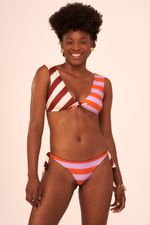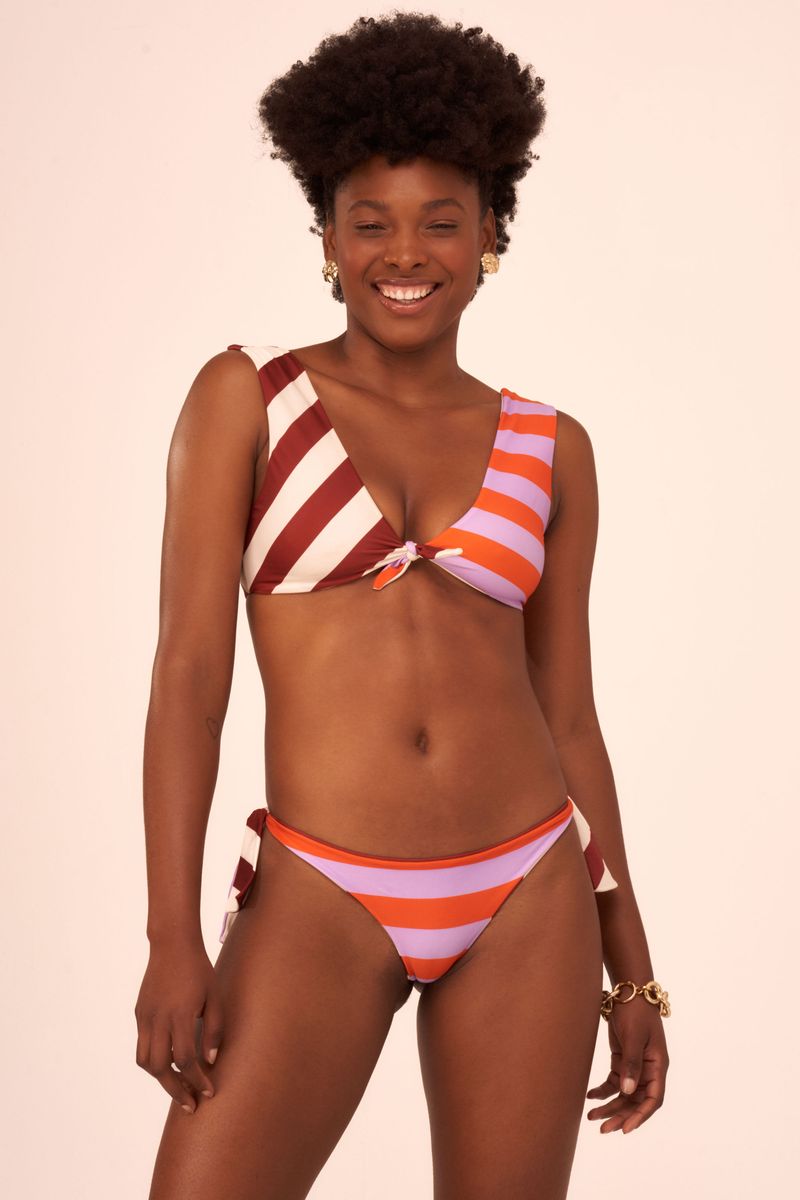 A Calcinha Monica, possui uma das modelagens mais incríveis da coleção, a parte traseira tem modelagem anatômica e veste bem qualquer bumbum. A frente é dupla face podendo alternar as estampas, e as amarrações laterais são ajustáveis.