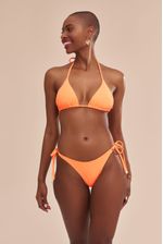 calcinha com cobertura mini do bumbum e amarração lateral de lacinhos que se molda a todos os biotipos. o tecido texturizado enriquece ainda mais o visual e as ponteiras em metal dourado dão o acabamento e charme a essa peça. modelagem super confortável para curtir os dias de sol. a cor citrino traz energia e positividade.