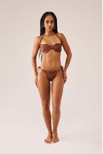 calcinha de biquini marrom cappuccino modelo string, modelagem mini, possui bumbum anatômico e é todinha feita em matelassê feito a mão: linha a linha, costura a costura, esta peça é uma verdadeira obra da altura costura do swimwear.