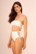 calcinha de biquini modelo hot pant com entrelaçados laterais, ideal para quem gosta cintura alta.
