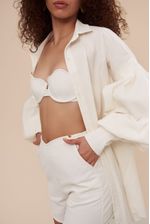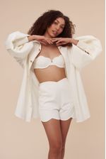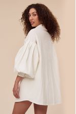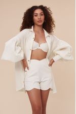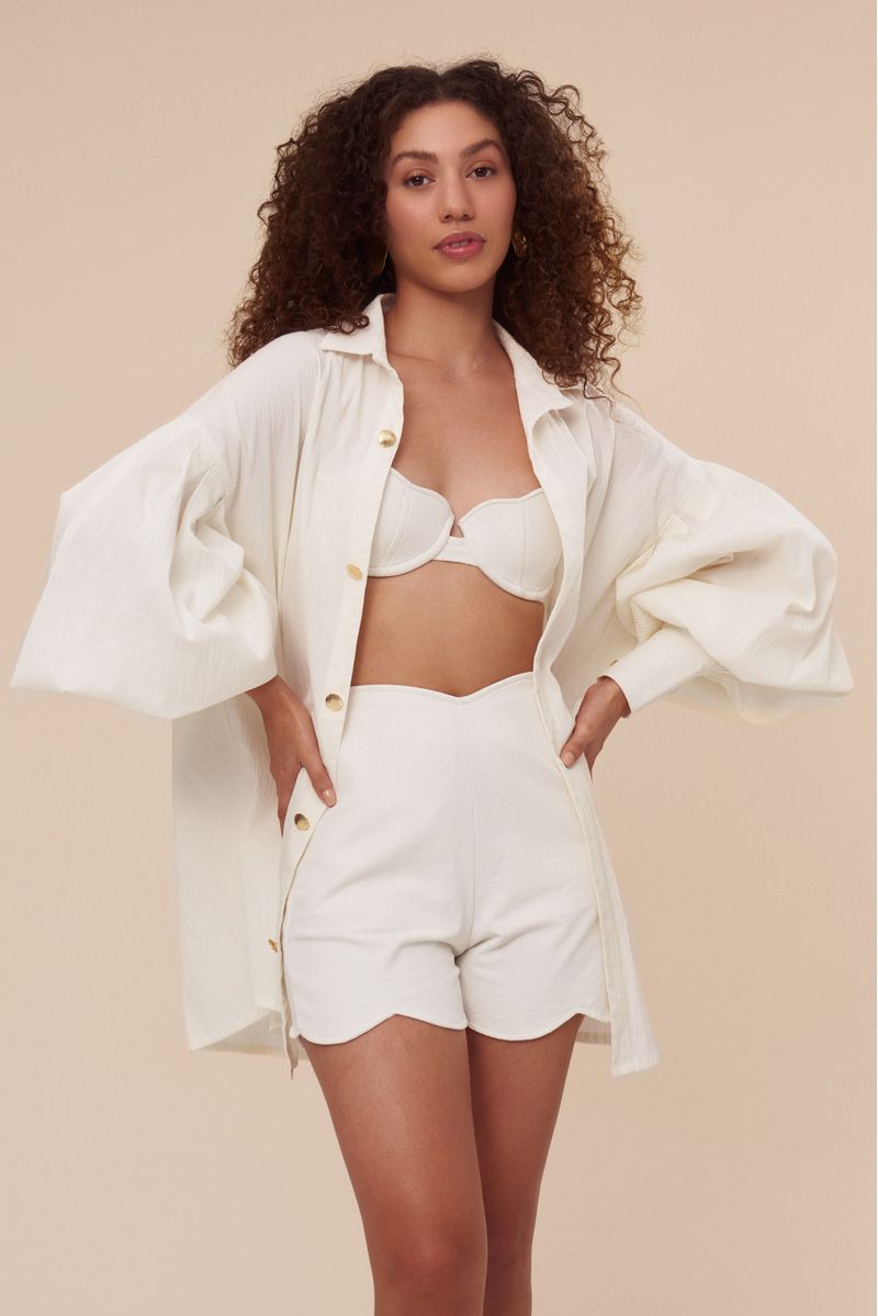 a camisa conchas é feita em algodão texturizado, remetendo às conchas do mar, inspiração desta coleção. com mangas plissadas, amplas e largas, essa camisa fica estruturada no corpo e elegante em qualquer biotipo. os botões de concha com banho dourado são o charme desta peça.