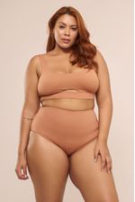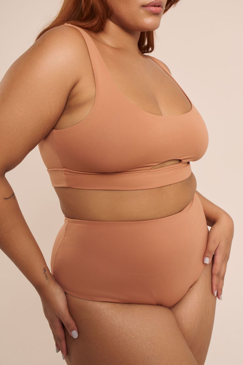 conjunto de biquini com top cintia, um top básico, porém muito confortável, com alças um pouco mais largas e uma abertura central que é sensual na medida, e a calcinha hot pant possui cintura alta e cobertura maxi do bumbum, além de ser confeccionado em tecido biodegradável e com fator de proteção UV 50.