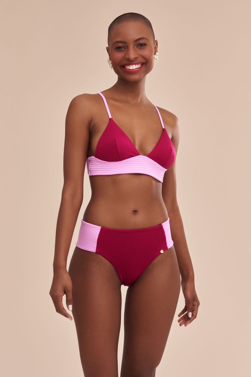 conjunto de biquíni com aplicação de matelassê (técnica francesa de costura) feito à mão. top triângulo com bojo e cós fixo. ideal para bustos pequenos a médios. o contraste das cores deixa a peça mais vibrante e solar. calcinha com cobertura midi e laterais largas. ideal para quem gosta de mais cobertura. fica elegante e veste todos os tipos de quadril.