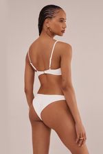 conjunto de top biquíni sem bojo, modelo com aro, possui amarração com fecho traseiro em metal dourado e calcinha biquíni modelo mini, confeccionados com a técnica de upcycling, onde cada cor de tecido e cortada e costurada uma a uma artesanalmente, unidas através de um patchwork manual. um trabalho exclusivo e incrivelmente rico em detalhes. uma verdadeira joia do beachwear!