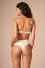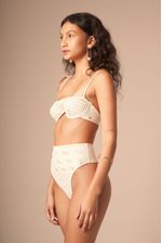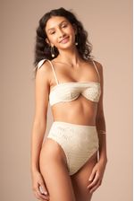 top balconet com aro contínuo e sem bojo. alças fixas com detalhes de folhas de magnólia. a hot pant é puro charme! com modelagem fio, mas laterais largas, ela veste muito bem qualquer biotipo. em tecido especial de macramê, esta peça é elegante nas duas variantes: areia e off-white. o tecido é trabalhado e tem detalhes vazados como um macramê. nas cores off-white e areia, esta peça é fina e delicada.