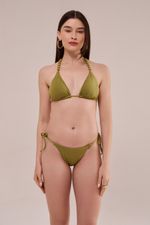 • a modelo veste P • proteção solar UV50 • top biquíni com bojo removível • amarração pescoço e costas • calcinha biquíni com cobertura mini • amarração lateral • proteção solar UV50 conjunto de top biquíni modelo clássico de triângulo confeccionado em tecido verde pistache com leve e discreto brilho, proteção solar UV50+ e com bojo removível. possui detalhe exclusivo de esferas aplicadas à mão, uma a uma, sendo 6 em cada alça, representando as 12 uvas da sorte que devem ser consumidas na noite de réveillon para atrair fartura e properidade. calcinha biquíni modelo clássico string confeccionada em tecido verde pistache com leve e discreto brilho, proteção solar UV50+ com amarração lateral. um verdadeiro charme: o conjunto mais especial e repleto de significado que já viu!