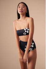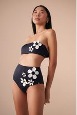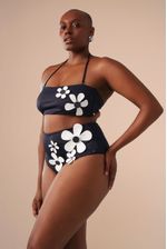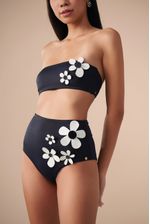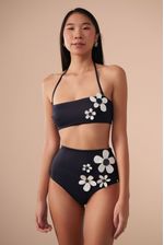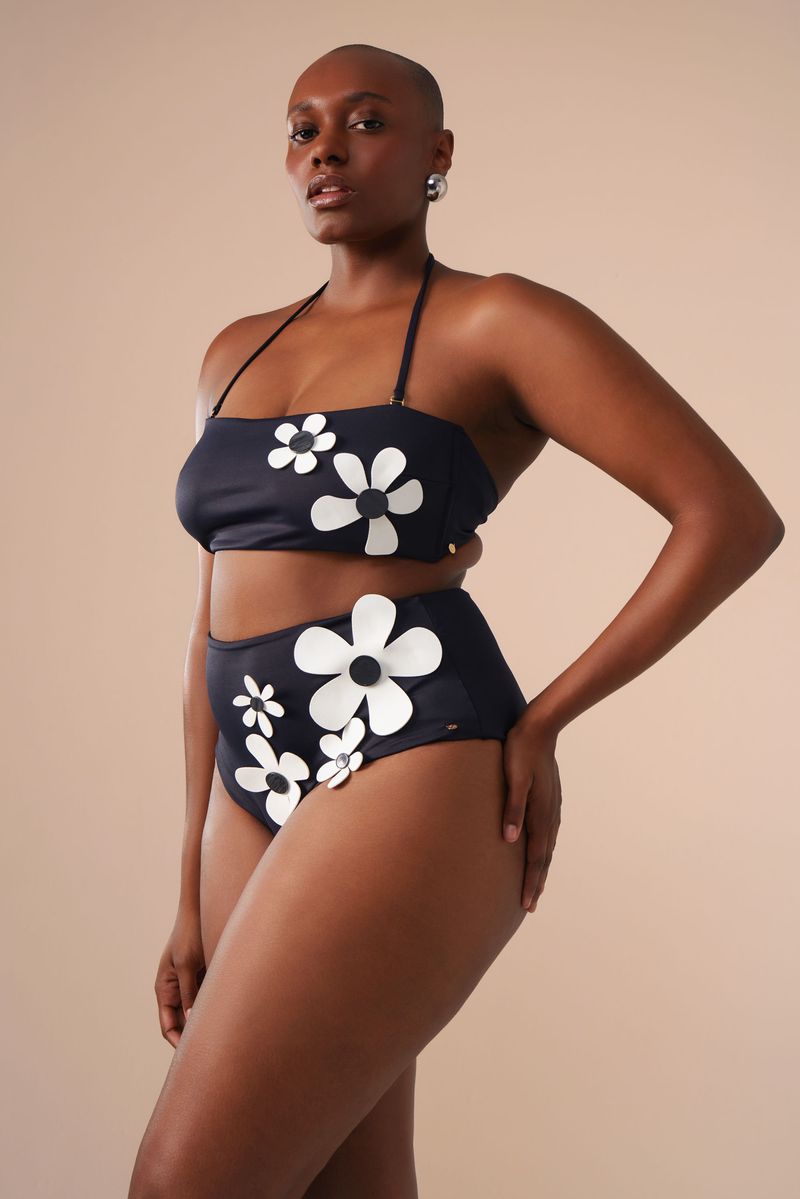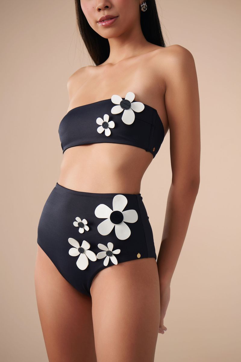 a calcinha hot pant possui cintura alta e cobertura maxi do bumbum, além de ser confeccionada em tecido biodegradável e com fator de proteção UV 50. o detalhe de flores filmadas e cortadas a laser e botões contrastantes tornam esta peça simplesmente única.