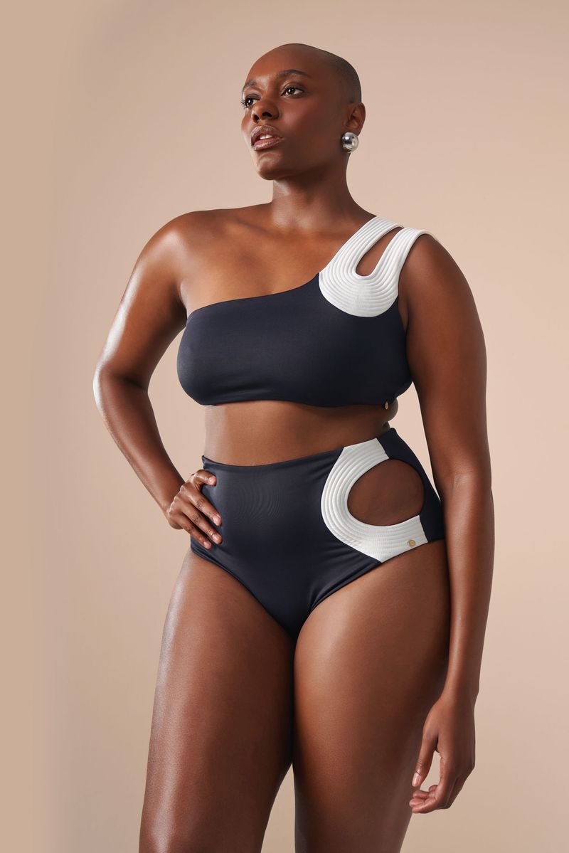a calcinha hot pant contour não é nada básica apesar das cores neutras. i recorte assimétrico em uma das laterais deixa a pele à mostra e possui acabamento de contorno em matelassê. peça bicolor. o tecido desta peça é biodegradável e tem proteção UV Solar 50. a calcinha hot pant tem modelagem de cós alto, é acinturada e veio para ficar, pois é indicada para qualquer biotipo.
