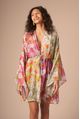 A estampa floral colorida é exclusiva. Em seda com modal, sua transparência por cima dos biquínis fica um charme e a paleta de cores remete às quatro estações. A modelagem de mangas amplas veste todo o tipo de corpo e deixa um movimento lindo.