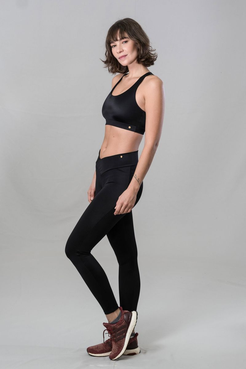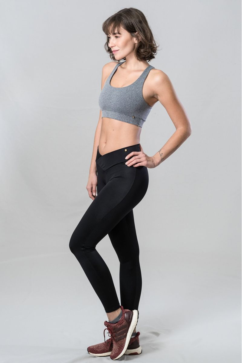 Esta legging é básica mas tem um detalhe lindo em V no cós da cintura. Feita em tecido Atletika tem power e fio tinto preto que evita transparências indesejadas.