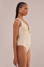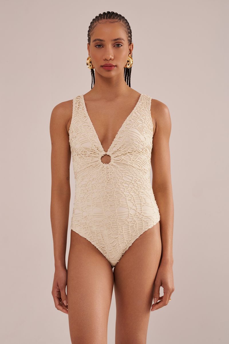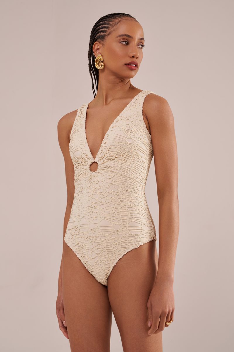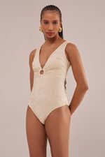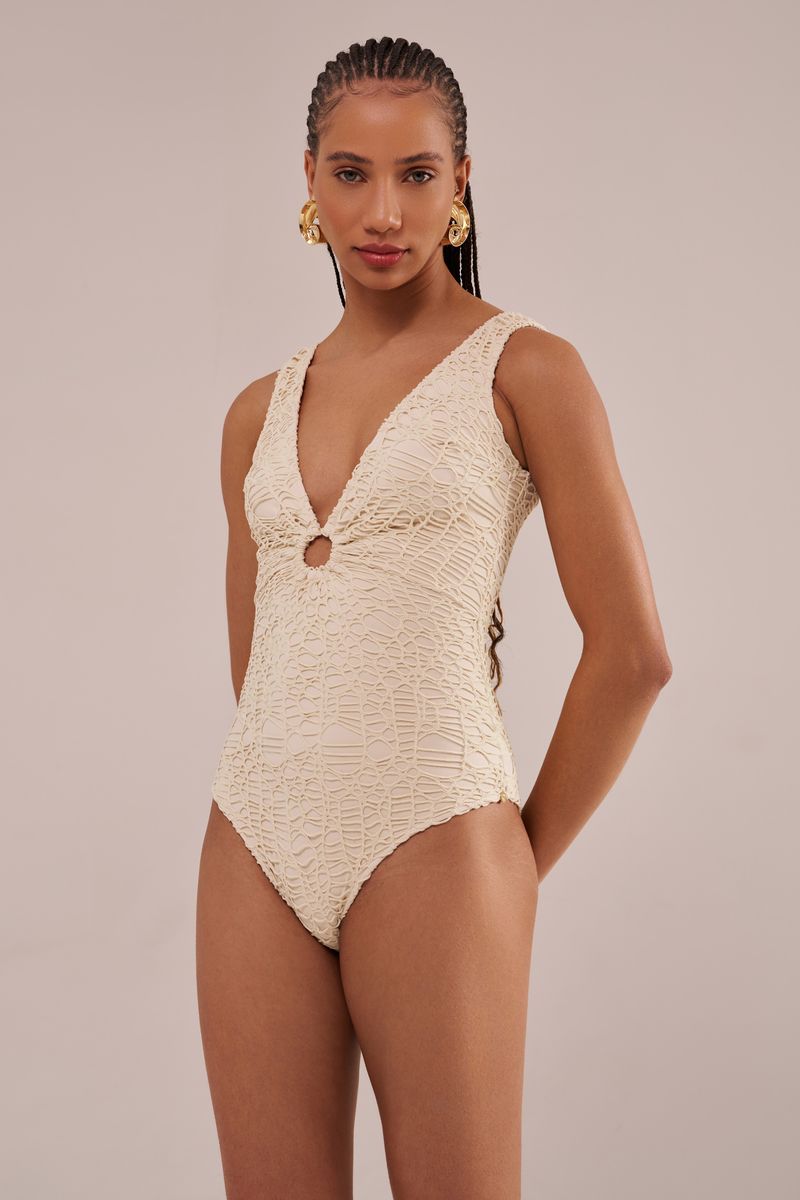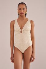 • a modelo veste P • sem bojo • cobertura média maiô confeccionado em tecido com trama especial com efeito crochê, alças médias, decote em V, forro duplo para evitar transparência e detalhe franzido frontal com argola em metal dourado. pode ser usado como body e fica ainda mais especial se combinado com o conjunto de kimono e a calça da mesma coleção. muito especial!