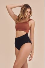 maiô de um ombro só bicolor com detalhe texturizado no ombro. a combinação desses dois tons é sóbria, mas atemporal e elegante, combinando com qualquer tom de pele. o maiô maria tem uma modelagem moderna e veste bem qualquer biotipo.