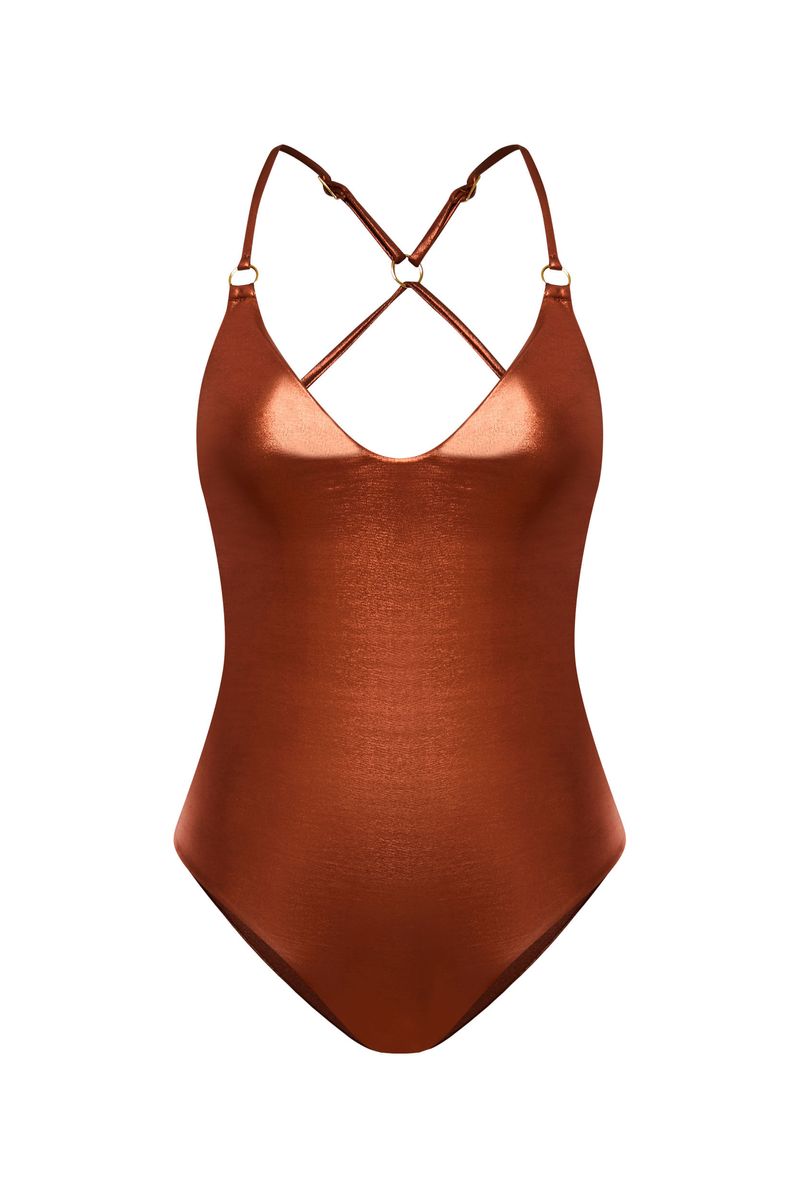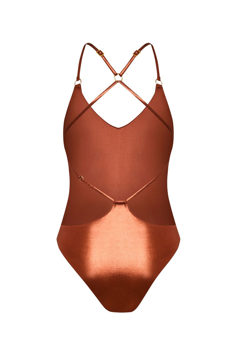 • tecido com efeito gloss • proteção solar FPS UV50 • a modelo veste G o maiô marissa é o próprio body sereia. frente em tecido brilhante com acabamento de argolas douradas de onde saem as alças. as pences laterais são super discretas e fazem a peça abraçar o corpo. alças estreitas com regulagem de altura na parte de trás. costas nuas com tiras entrelaçadas. fechamento traseiro com gancho dourado e regulagem de tamanho que se adapta para várias medidas.