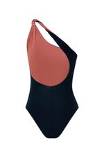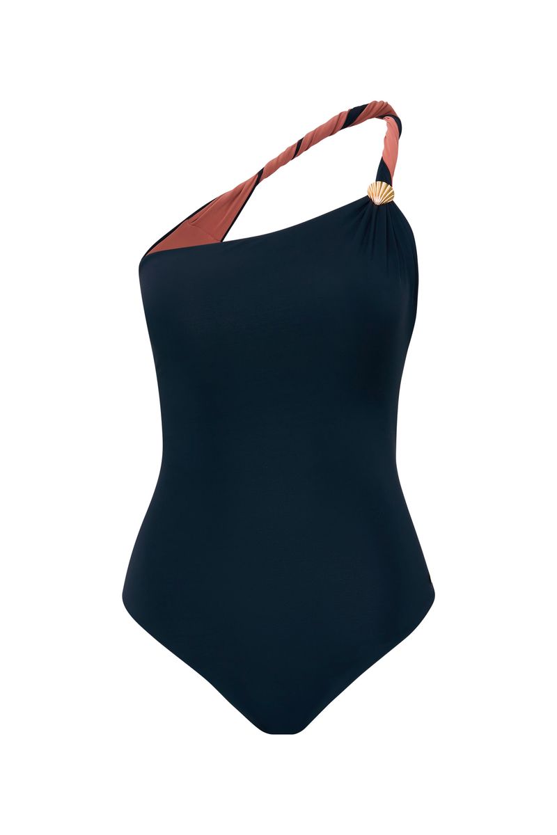 maiô um ombro só bicolor, dupla face, confeccionado em tecido biodegradável certificado, super levinho, confortável, com toque gelado e secagem rápida. seu tecido tem proteção UVA, UVB 50 e tecnologia anticloro, ou seja, resiste até 10x mais ao cloro comparado com os elastanos convencionais. o fio de elastano usado na composição além de resistir ao cloro, também protege a peça de agentes externos como o calor e produtos de proteção solar. o diferencial desta peça é a alça torcida que passa pelo ombro e vai até as costas com detalhe em forma de concha dourada: elegante e sensual na medida. nas cores preto com bronze e verde água com papaya. é perfeito para ser usado como maiô ou body!
