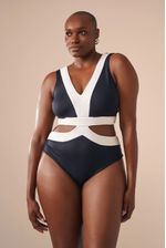 esse maiô é o must-have da coleção. o contorno feito em matelassê deixa a silhueta bela e muito chic. o contraste das cores off white com caramelo e preto com off white deixa a peça ainda mais atemporal. com recortes na cintura, decote V e fecho nas costas revestido com banho dourado. além do tecido duplo na parte traseira do bottom, a peça é toda pensada para aliar beleza e conforto. o tecido desta peça é biodegradável e tem proteção solar UV50.