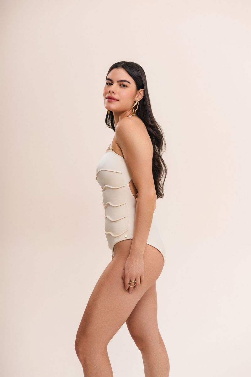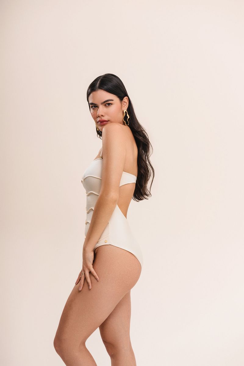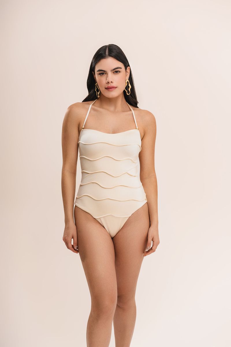 maiô decote reto com bojo e alça removível. fecho metálico em banho dourado na parte das costas. a costura anatômica na parte traseira e os elásticos embutidos garantem muito conforto ao vestir. o detalhe das costuras na parte da frente remete ao movimento das ondas do mar.