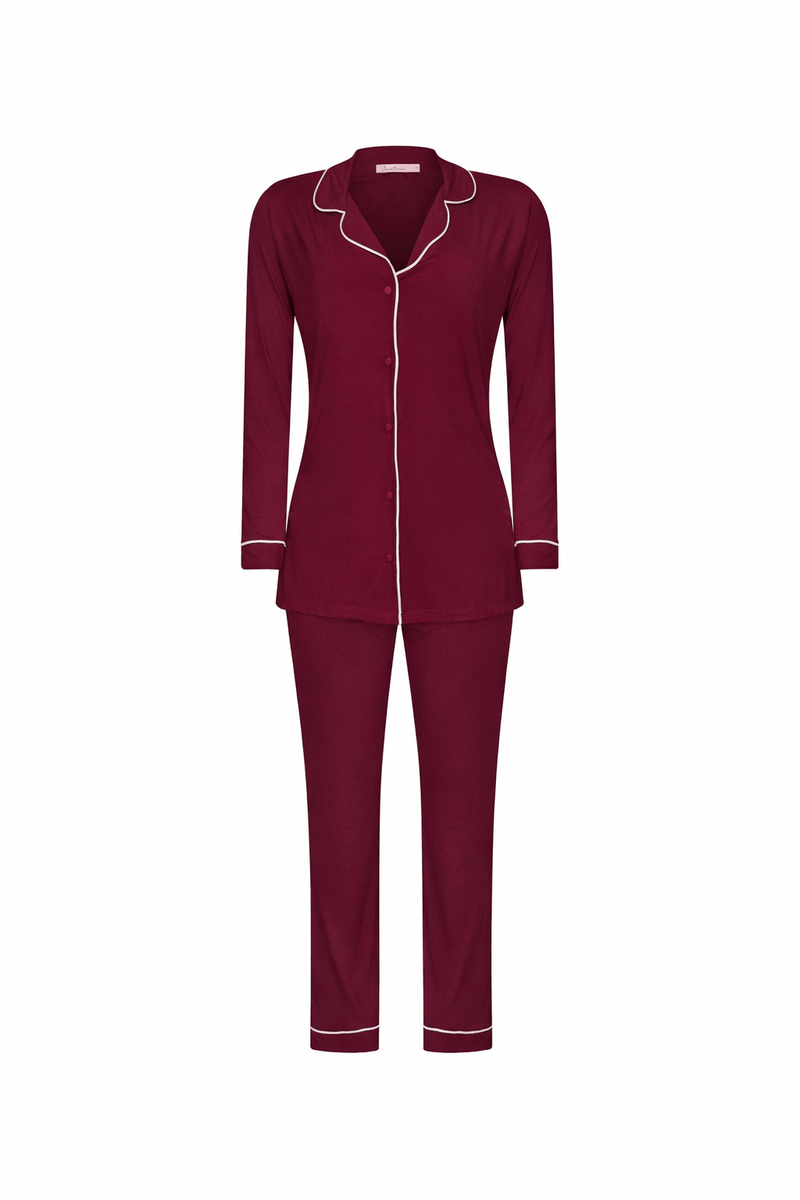 · cintura com elástico o pijama classic, como o nome próprio diz, é atemporal. sua modelagem clássica é elegante e cheia de conforto. todo em viscolycra com detalhes de vivos contrastantes e fechamento com botões forrados. o conjunto com manga longa e calça comprida é ideal para meia estação ou inverno.