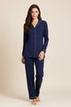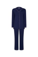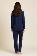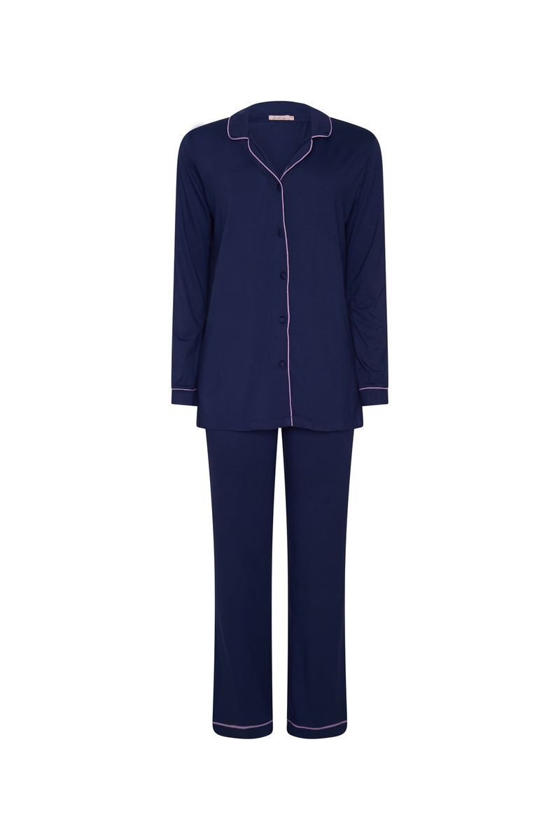 O pijama Classic como o nome próprio já diz, é um pijama atemporal. Sua modelagem clássica é elegante e cheia de conforto. Todo em viscolycra com detalhes de vivos contrastantes. Fechamento com botões. O conjunto com manga longa e calça é ideal para meia estação ou inverno. Na cor marinho este conjunto fica ainda mais chique.