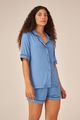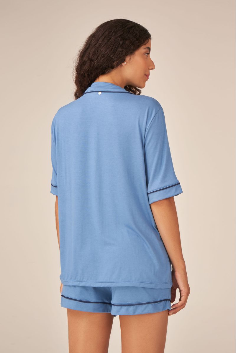 Short doll com base Classic, de botões, manga curta, e detalhes de vivos na vista, gola e barra do shorts. Uma modelagem clássica como o próprio nome já diz e também muito confortável com a base de tecido de viscolycra. A cor Lagoon é um azul denso que simboliza calma, ideal para uma boa noite de sono.
