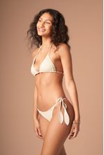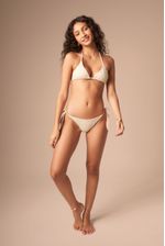 a calcinha de biquini string é puro charme, em tecido macramê e detalhes de folhas de magnólia feitas à mão no acabamento das amarrações. para quem gosta de modelagens menores. combina com o top triângulo.
