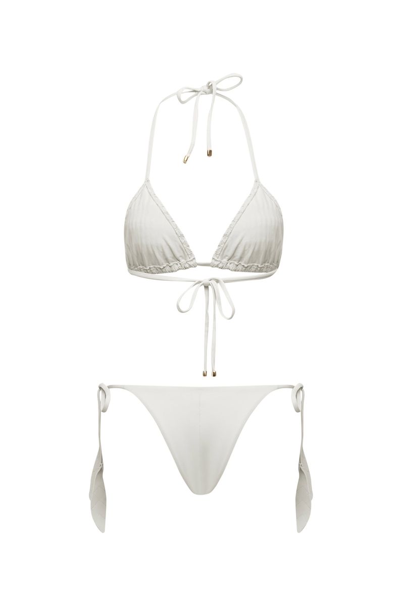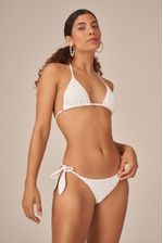 a calcinha string é puro charme, em tecido macramê e detalhes de folhas de magnólia feitas à mão no acabamento das amarrações. para quem gosta de modelagens menores. combina com o top triângulo.
