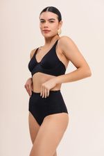 top decote v e alta cobertura com arame e barbatanas laterais que dão sustentação aos seios. alças paralelas com regulagem e fecho traseiro em metal dourado. o detalhe em matelassê da base traz requinte e sofisticação a essa peça.