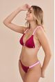top triângulo sem bojo e alças trabalhadas em matelassê. veste seios pequenos e médios. alças paralelas dão mais sustentação. o contraste das cores deixa o conjunto mais vibrante e solar.