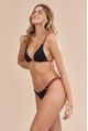 top triângulo sem bojo e alças trabalhadas em matelassê. o tecido principal é biodegradável. a combinação preto com bronze é sóbria, mas super atemporal. veste seios pequenos e médios. alças paralelas dão mais sustentação e tem opção de regulagem.