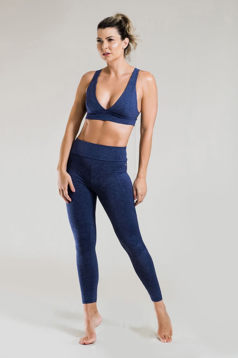 O Top nadador é ideal para sustentar seios médios a grandes. Feito em um tecido muito confortável, na variante mescla azul a cor é o destaque.