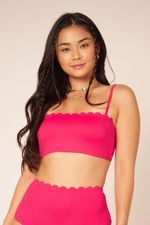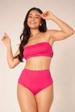 O Top Faixa Cora tem alças removíveis e não tem bojo. Uma peça versátil que pode ser usada em várias ocasiões e looks além da areia. Seu acabamento é filmado e com recortes de ondinha. O acabamento traseiro é com fecho metálico dourado.