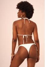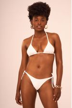 top cortininha sem bojo, o tecido texturizado brinca com recortes deixando ainda mais harmonioso. as ponteiras douradas como acabamento são o charme.