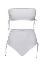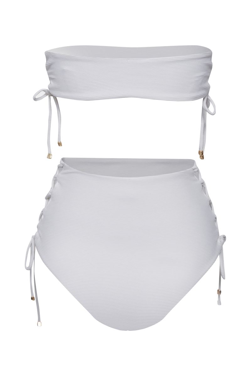 o top faixa com entrelaçados laterais é delicado e o mais puro charme. em tecido texturizado ecoamigo, este biquini é um must-have. na cor off-white fica ainda mais lindo e chique.