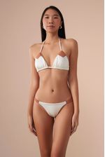o top triângulo continua sendo uma das modelagens preferidas das mulheres apaixonadas por biquínis. por isso, fizemos este top no estilo clássico, porém com um detalhe lindo de matelassê, contrastando com a outra cor da peça. sem bojo e com amarração de roletês e ponteiras como acabamento. o tecido desta peça é biodegradável e tem proteção UV solar 50.