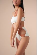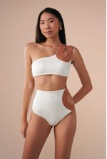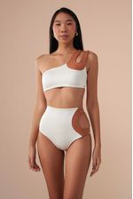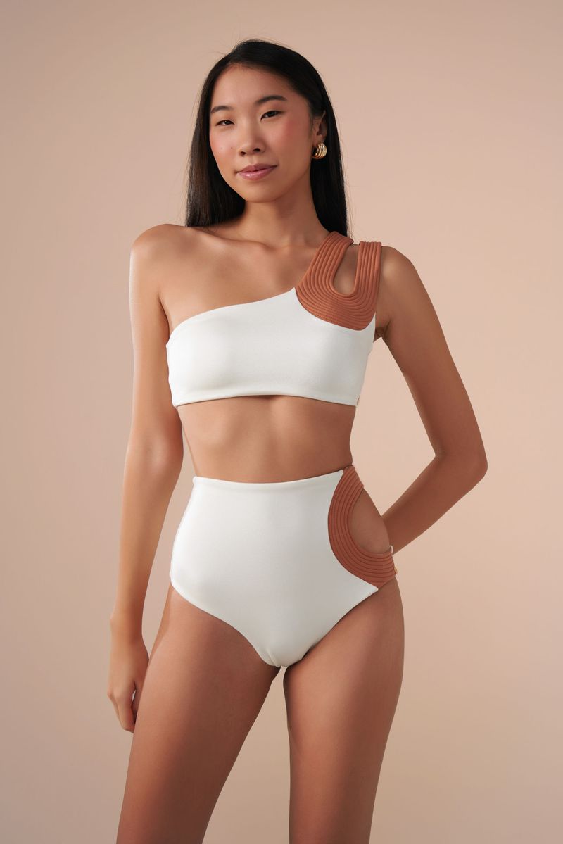 o top contour um ombro só vem em duas variantes muito elegantes. Em tons neutros, as combinações são preto com detalhes em off white e off white com detalhes em caramelo. O detalhe especial fica por conta do matelassê: todo trabalhado com costuras artesanais feitas uma a uma, formando uma gota. o contorno, como o próprio nome da coleção já diz, deixa o desenho da silhueta do corpo ainda mais lindo. o tecido desta peça é biodegradável e tem proteção UV Solar 50.